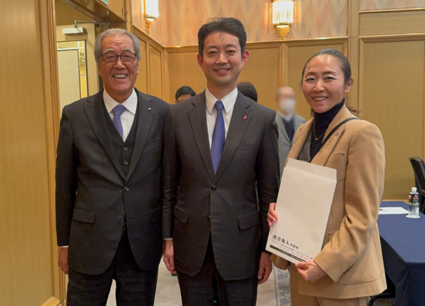 (左から JID GROUP会長 井坂泰志、千葉県知事候補 熊谷俊人 様、日本賃貸保証代表取締役 梅田真理子)