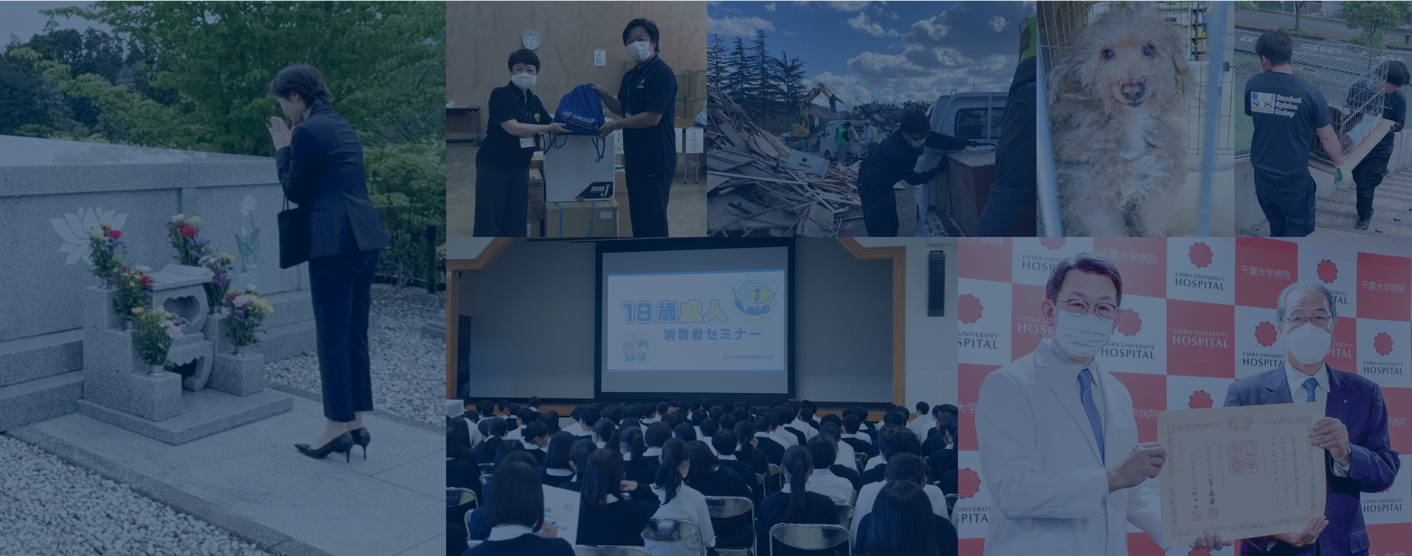 この思いは創業の出発点であり、常にすべての原動力となっています。社会貢献活動は災害時の寄付、居室に取り残されたペットの保護、若者への教育支援など多岐にわたり、千葉から全国へと広がっています。「困っている人を見過ごさない」――その精神は今も企業活動の中心に在り続けています。