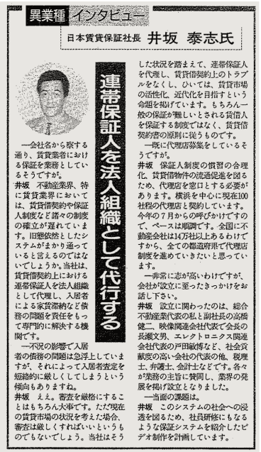 「保証人だけにはなるな」といわれる世の中で、賃貸保証というサービスは全く理解されませんでした。全国紙に2000万円をかけて広告を出しても、反応はゼロ。しかし、井坂は諦めませんでした。