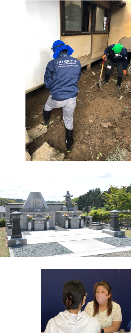 JIDの「親代わり」という理念は保証の枠を超え、多様な社会貢献活動へと広がりました。本社を都内から千葉に移し、生活再建のための住居支援や職業支援、無縁仏を供養する永代供養墓の建立など、社会への取り組みを一層深めました。