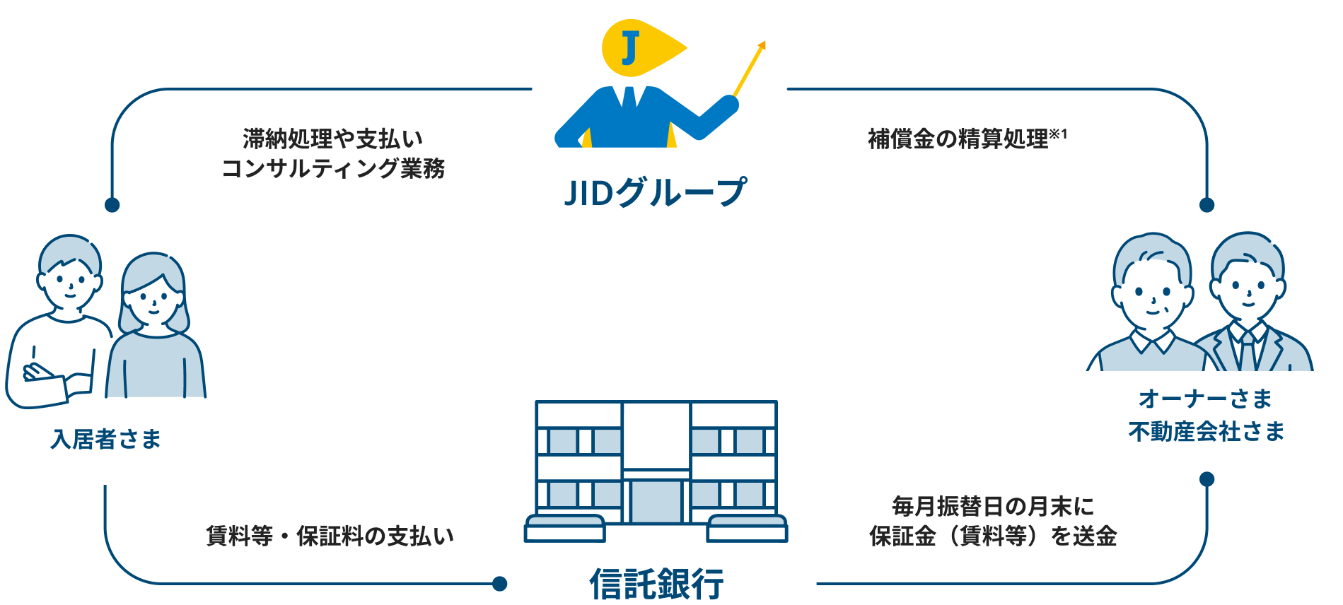 - 未納賃料等(原状回復費用等)の保証金支払請求がある場合は、原則JIDが立ち会います。